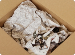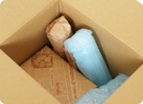 - 商品の隙間に新聞紙を敷き詰め、エアーキャップで蓋をし、さらに新聞紙を敷き詰めます。