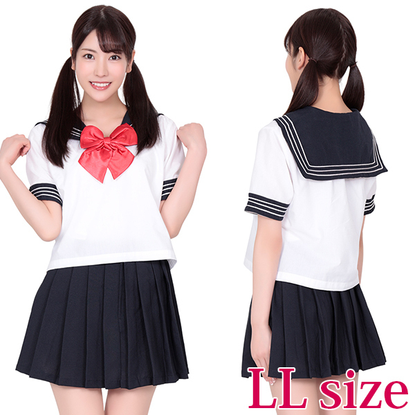 紺、白、赤の、制服定番カラーで、使いやすいコスチュームです!赤いリボンが私の目印!サイズはLLサイズです。