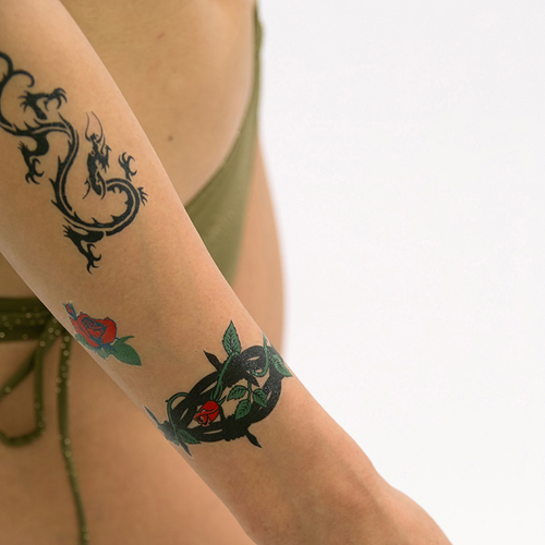 入浴したり、海やプールに入っても2、3日は取れません!あなたならどこに貼る?SM女王様風に胸元?ほのかにセクシーな首筋?クールに決まる腕?小悪魔ちっくな足首?パーティーに、お祭りに、イベントに、大活躍!あなたの個性で選んでね!