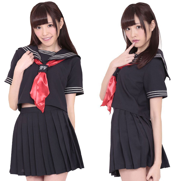 このセーラー服は、スカーフ留めに文字が入ったお嬢様学校仕様!赤と白のスカーフ付きですので、どちらかお好きな色で女子高生コスプレを楽しめます。