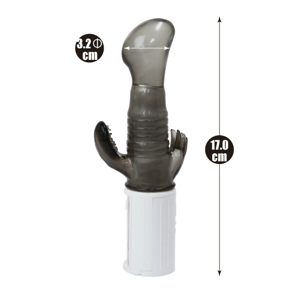 クリ・ヴァギナ・アナル付近を同時責め!悦楽のトリプルバイブレーター。Gスポット刺激用の膨らみを持つ、つるつるヘッドのポールと、密集した突起で刺激するクリバイブ、そしてアナル周辺をくすぐるフラップが、同時に貴女を責めまくる!気持ちイイにも程がある!極楽上等、可愛いピンクのバイブレーターです。単4電池×3本付属。