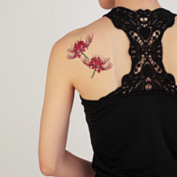 美しく咲き誇る曼珠沙華の花が色っぽい!リアルに仕上がるレギュラーサイズの本格派タトゥーシール。