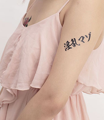HOME > タトゥー・刺青シール > フォーレターワード > タトゥーシール 淫乱マゾ(黒横文字) 小サイズ