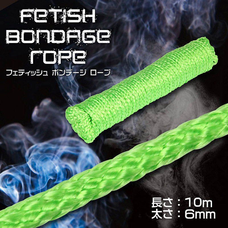 ●蛍光色のグリーンカラー●全長10m・太さ6mm●肌を傷めず、痕も残りにくいソフト素材●拘束プレイ初心者の方でも扱いやすいのがポイント●シルクのような肌触りがたまらないフェティッシュロープ●長めのロープなので亀甲縛りや達磨縛りもお手の物!本格的な縛りを楽しめるSM拘束グッズです。