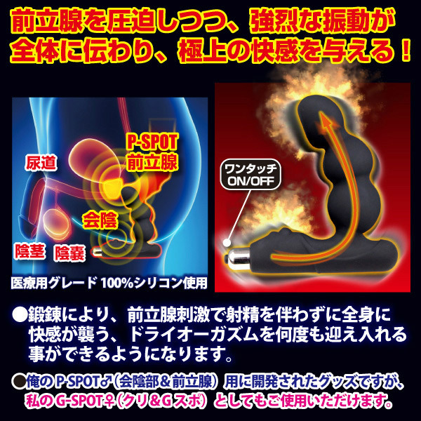●医療グレード100%シリコン素材を使用●電源ON/OFFが片手で操作できるワンタッチスイッチ●前立腺に猛烈な刺激を与える三連球形状●女性のクリ&Gスポット責めにも最適。