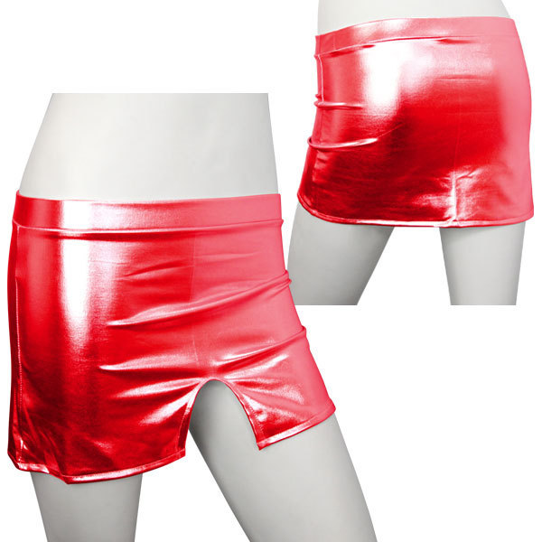 ド派手なレッドカラーの超お目立ちアイテム!キラッキラのツヤ感溢れるスリット入りミニスカート。