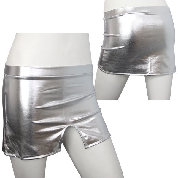 コスプレのお供に♪ヒップラインを美しく演出するメタリックシルバーのミニスカート。●輝きを放つメタリックシルバー●ギリギリまで魅せるミニ丈スカート●裾中央:セクシーなV字カット。スリットは前後どちらでもOK!タイトなつくりながら心地いい履き心地。みんなの視線を奪うセクシーコスチュームです。