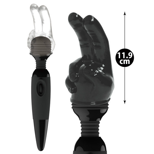 HOME > バイブ(電動こけし) > 電マ・アタッチメント > パワーヘッド ダブルフィンガー (ブラック)