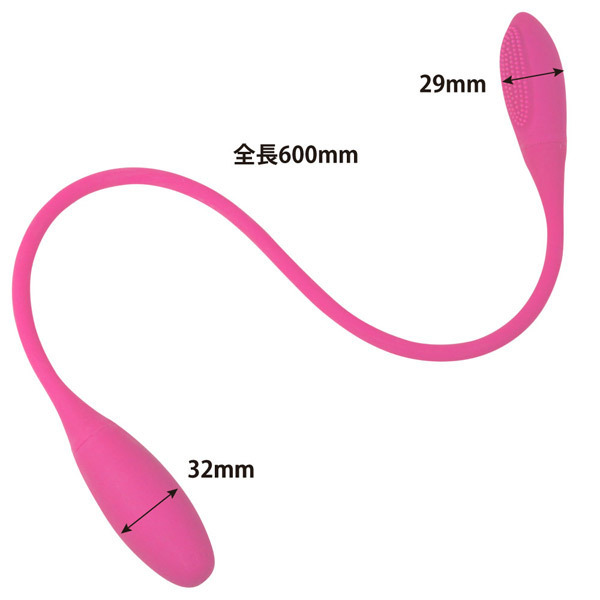 ●『プリティラブ』シリーズ●高品質なソフトシリコン素材●全長60cmにも及ぶロングボディ●両先端にモーター内蔵のW仕様●先端直径:小2.9cm・大3.2cm●連動した7パターンの強力振動●USB充電式(専用ケーブル付属)。