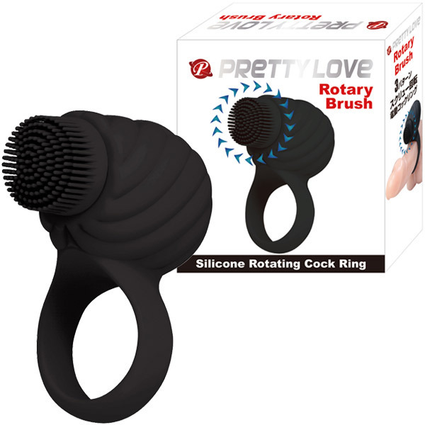 マットな質感のシリコンコックリングで締め付けて男性力UP!さらに女性器をグイグイ攻めまくる回転ブラシでパートナーを快感攻撃もできる、優秀な男性補助グッズ。