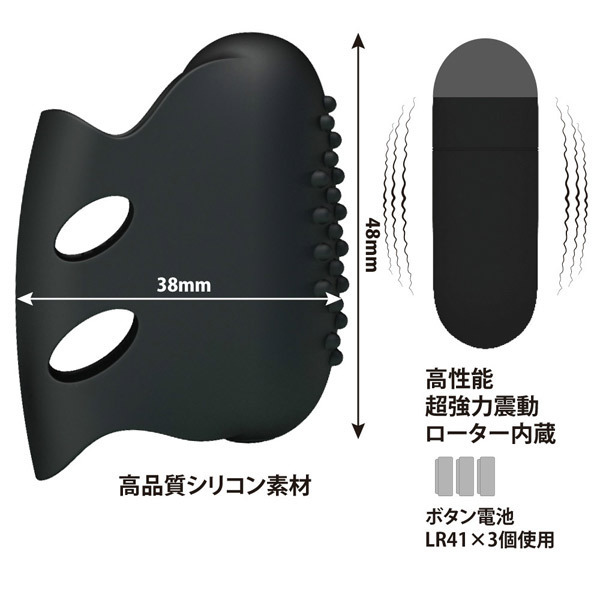 ●装着位置を変更できるタイプ「2」●医療グレードの高級シリコン製●滑らかで柔らかな優しい肌触り●指の腹側表面に無数のイボ加工●強力振動の高性能ローター内蔵●振動機能はシンプルな1パターン●ローターは着脱&電池交換可。