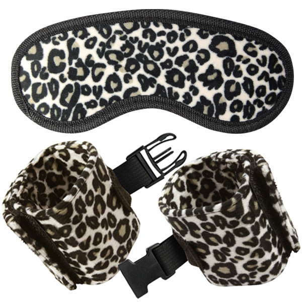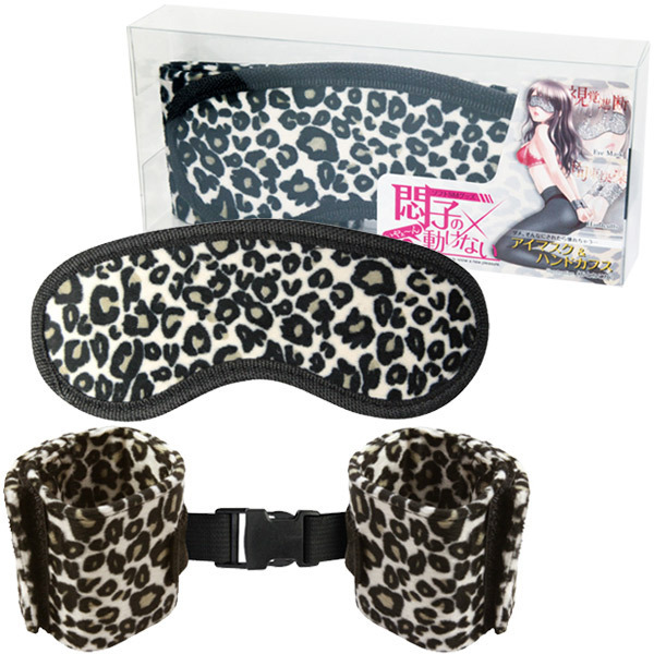 ●人気アニマルモチーフのヒョウ柄●定番アイマスク&カフスの二点●ふわふわ感触のソフト素材使用●マスクは後ろゴムのフリーサイズ●手枷はマジックテープで調節可能●連結はサイドリリースバックル。