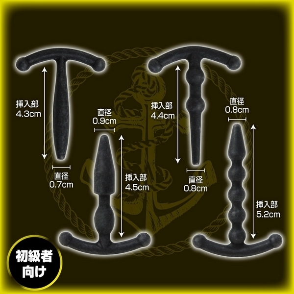 CBTビギナーさんの尿道責めプレイに♪錨デザインの尿道プラグ4個セット「メイルデバイスアンカー ビギナー」。