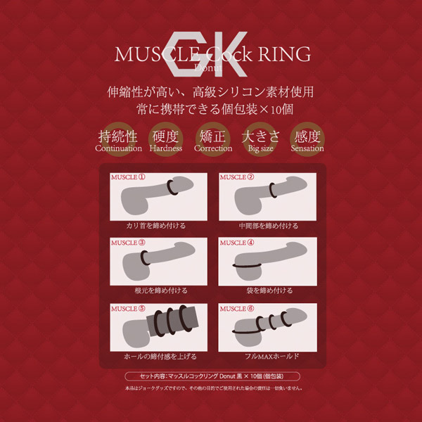 ●締め付けの強いドーナツ(黒)●携帯しやすい個包装×10個入●高い伸縮性の高級シリコン●締め付けで感度&持続力向上。