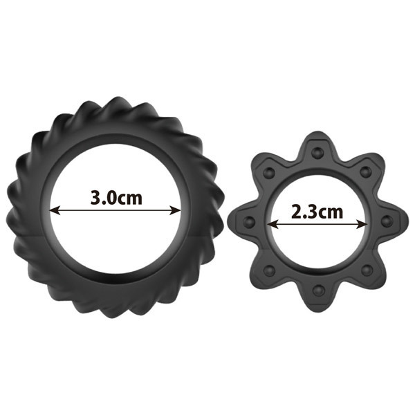男性自身をしっかり締め付けて強力サポートするペニスリング2種セット!2個同時に装着すれば神の如きパワーがその竿に宿るかも。