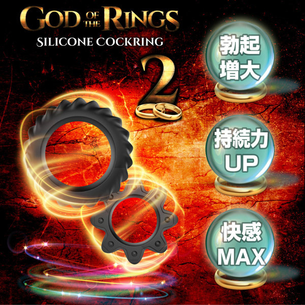 勃起増大、持久力UP、快感MAX!高品質シリコン製コックリング2種セット「ゴッドオブザリング 2」。