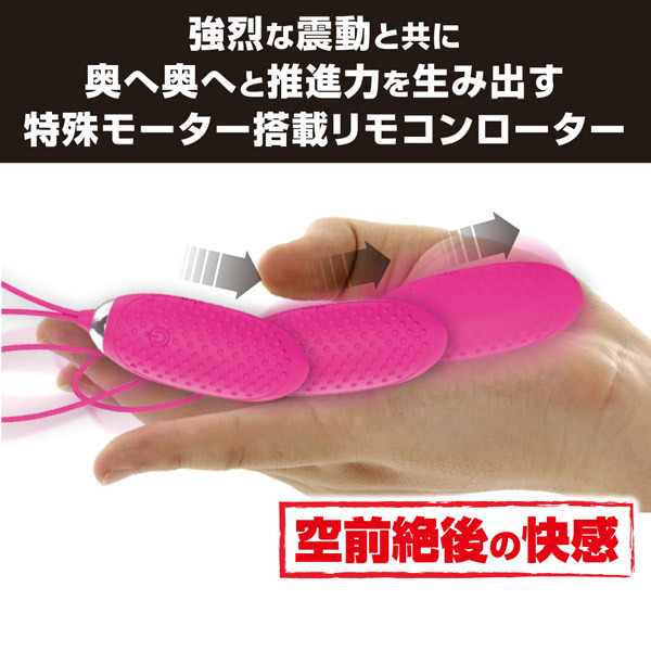 膣の奥へと突き進む強烈振動が特徴のリモコンローター「プリティラブ リモートエッグ2 ストロベリー」。