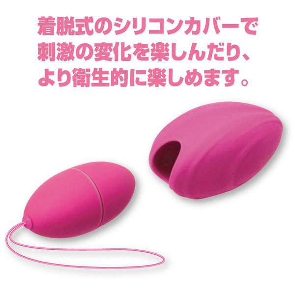 最大10mの距離から遠隔操作できるワイヤレス仕様で屋外プレイも楽しめるリモコングッズ!多彩な12パターン振動を搭載したエッグ型ローターに着脱式の高品質シリコンカバーを装着することでサイズアップ!刺激の変化も楽しめる上、より衛生的に使用可能です。