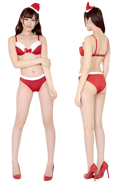 ブラ中央にちょこんと付いたリボンがキュート!ミニサイズのサンタ帽子もセットになったセクシーコスチュームです。