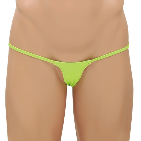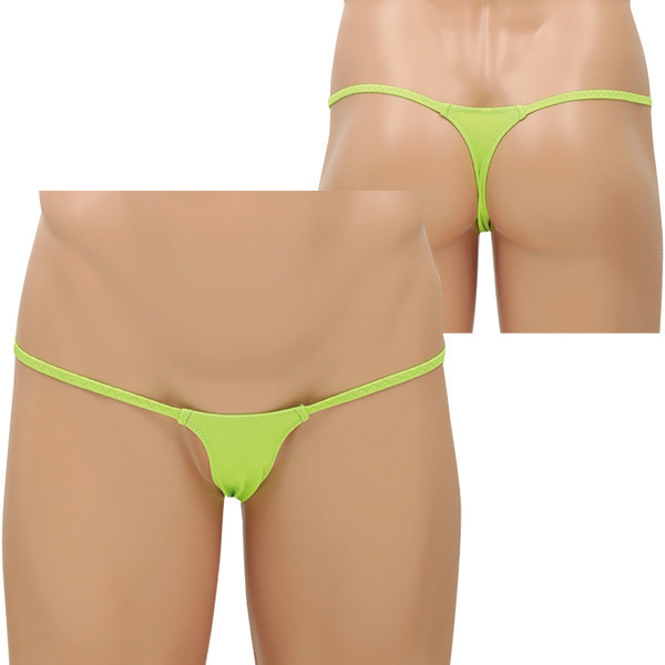 <EROX>シンプルスタイルでセクシーに魅せる大人のメンズランジェリーシリーズ!ネオングリーンのマイクロTバックショーツ「ワルサー」。スパンデックス5%、ポリエステル95%。