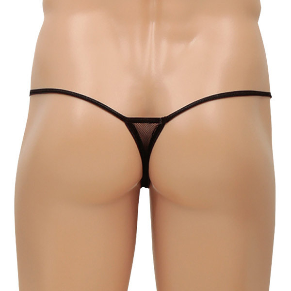 <EROX>メッシュデザインでセクシーに魅せる大人のメンズランジェリーシリーズ!ブラックカラーのサイドストリングTバックショーツ「コルトパイソン」。スパンデックス5%、ポリエステル95%。