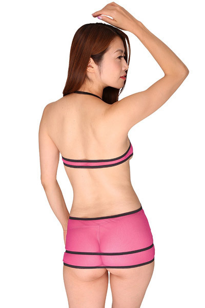 黒パイピングをアクセントにしたシースルーコスチューム!濡れると更にセクシー度が増すピンクカラーのスパークハーフ素材を使用。
