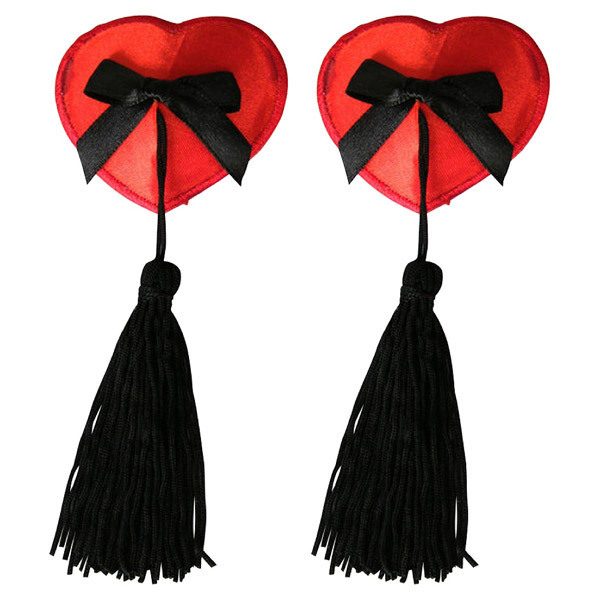 可愛らしいハート型ニップル&リボンと、ゆらゆら揺れるタッセルを組み合わせたゴージャスなデザインは、ショータイムやナイトパーティーにも最適です。