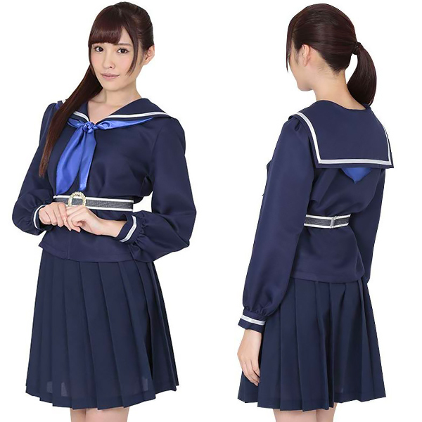 爽やかなブルーカラーのリボンとウエスト部分のベルトが個性的なので、ありきたりなセーラー服に物足りなさを感じている方にもオススメ。