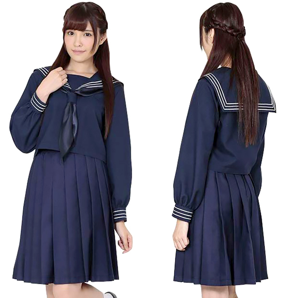 コスチュームの定番!ともいえるセーラーコスチュームは襟と袖口に3本ラインが初々しさも感じさせる制服です。