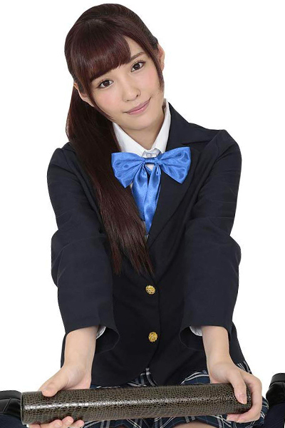 金ボタンの紺色ジャケット、チェック柄のプリーツスカート、そして明るめカラーの青リボンがセットになった女子校生コスチューム。