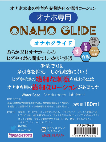 オナホールの使用感を最大限に引き出してくれる低粘度の専用ローション「オナホ専用 オナホグライド 180ml」が登場!オナホールというものは、ソフトで柔らかい素材のものから複雑な内部構造を持つヒダイボのものまで様々な形状のものがありますが、オナホ専用ローションのオナホグライドならば、複雑な内部形状を持つオナホでもしっかりと浸透してくれて、オナホ本来の快感を最大限に発揮させてくれます。