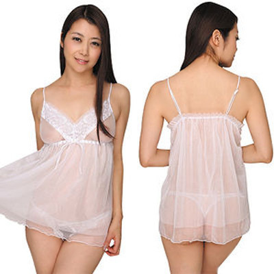フラワーモチーフシースルーベビードール&ショーツ ホワイト