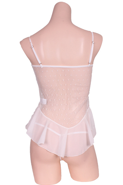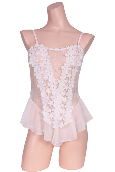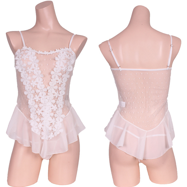 商品ID:b26934 カラー:ホワイト 種類:ランジェリー/Z0353 仕様:Mサイズ:B78〜88cm・W58〜70cm・H87〜95cm セット内容:ベビードール、ショーツ 素材:ポリエステル、他