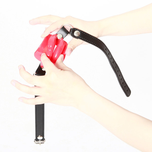 分厚い唇のインパクトが凄い!パートナーの口元を大きく開かせ固定する口枷。