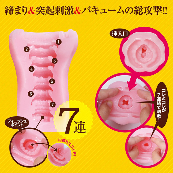 最奥まで7つのリングが連なり、締め付け、強烈なバキュームをもって貴方のムスコを総攻撃する!本物のような気持ち良さを味わえる名器級のオナホや、子宮系オナホが好きな方は必見の商品です♪国産ローション付属