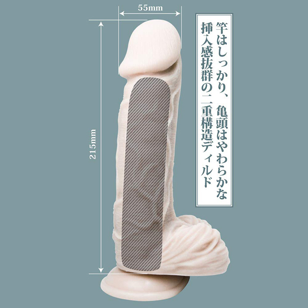 野生を呼び覚ます刺激!しっかりと芯がありハリのあるボディ。外側は柔らかな素材で超リアルな肉感!硬めの芯と柔らかな亀頭・皮のリアル二重構造。長さ、太さ共に超ド級!上級者向けの超BIGサイズ●強力吸盤で壁・床に固定可能●高品質シリコン製