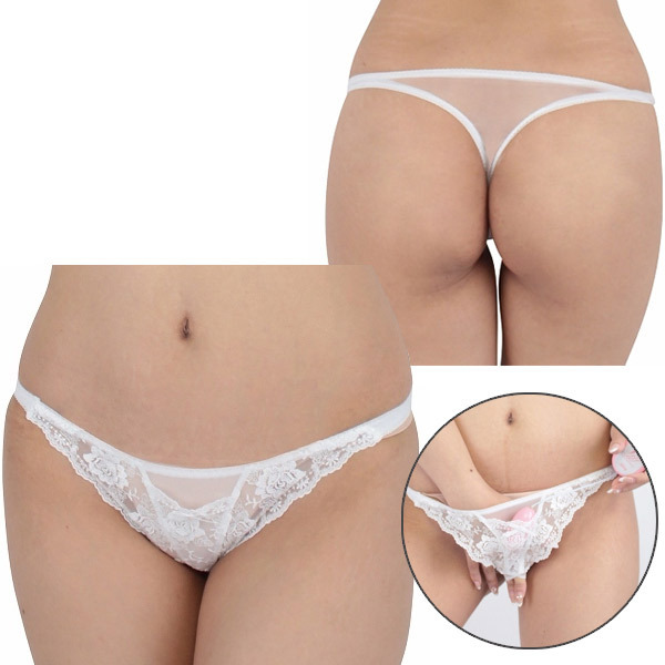 ローターポケット付きフラワーレースシースルーTバック ホワイト
