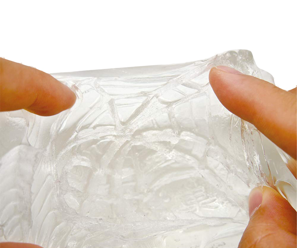 亀〇全体を包み込む横ヒダに、長い縦ヒダが絡みつき、ネット状のスパイダーヒダで縦横無尽に責め立てる!腰を少し動かすだけでもしっかり刺激!長期間S〇Xしてない蜘蛛の巣が張ったオンナノコの興奮を体験しよう!興奮度MAXのクリアボディ。