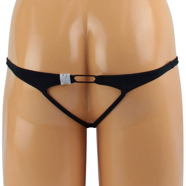 亀頭をチラリと覗かせセクシーにアピールする日本製のVバック(メンズ用)。伸縮性の高いストレッチ生地を採用で穿き心地抜群♪男の象徴をエロティックに魅せつける男性用Vバックです。ブラックカラー、Mサイズ