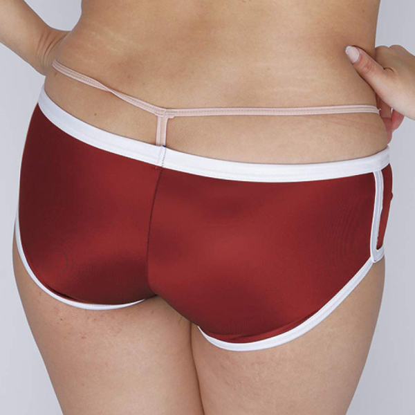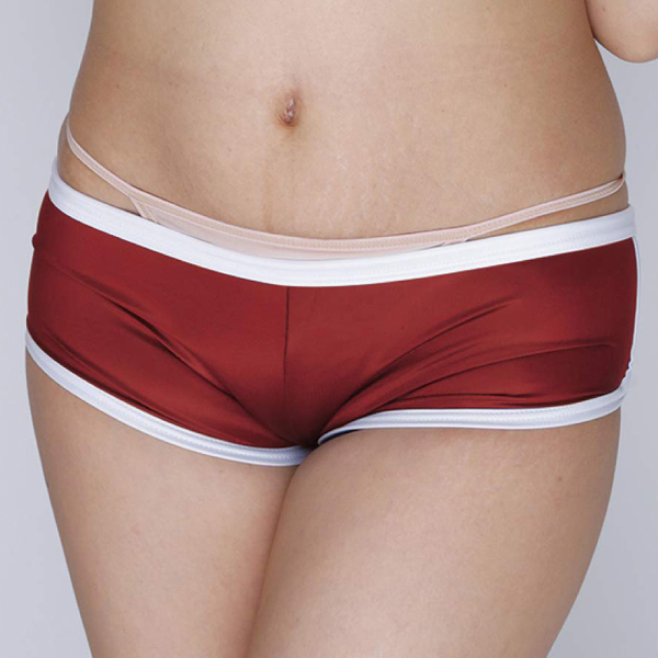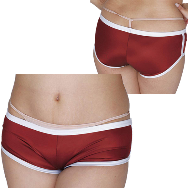 ホットパンツとブルマが合体したようなデザインが特徴的!やわらかな光沢感が美しい日本製の体操服コスプレ(エンジ)。伸縮性のあるストレッチ生地が穿き心地抜群!別売りの「光沢ストレッチ体操服 下乳Tシャツ エンジ」などと一緒に体操着コスプレをお楽しみください♪
