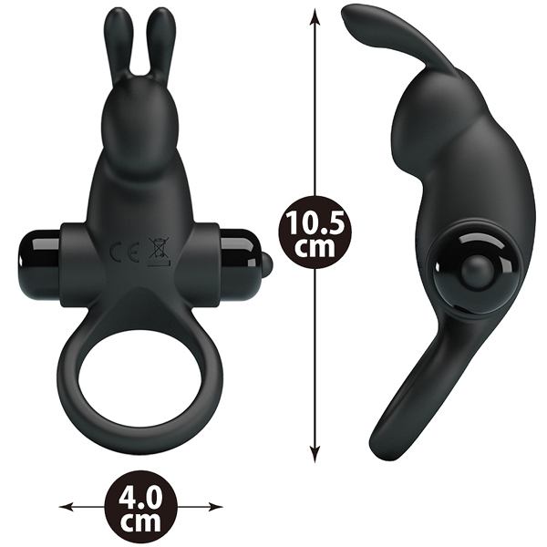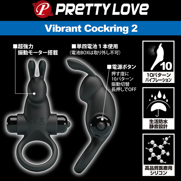 ウサギ型のシリコン製ペニスリングで根元からギュッと締め付け2人の性活を刺激的にロングサポート!素材には肌に優しい高品質な医療用シリコンを採用。敏感なアソコをしっかり締め付け、10パターンの強力振動でパートナーをイカせてから貴男も昇天!生活防水&静音設計、電池式(単4電池×1本使用)