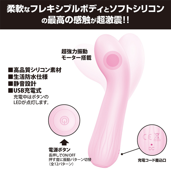 自由自在に曲がる柔軟ボディと、肌に優しい滑らか質感が最高の感触を生み出すUSB充電式のスティックバイブ。いつまでも挿れていたくなるような気持ちの良い触感!高性能な強力モーターを内蔵で、12パターンもの多彩な振動が味わえる♪高品質ソフトシリコン素材を採用!ボタン1つのシンプル操作で初心者でも簡単にお使いいただけます。生活防水&静音設計