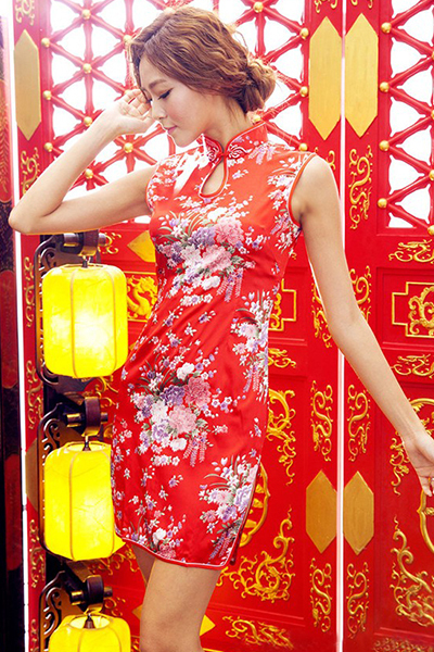 谷間を強調する胸元に思わず目がいく真っ赤なチャイナドレス!華やかな美人コーデで、ふとした仕草にも優雅さが宿ります。