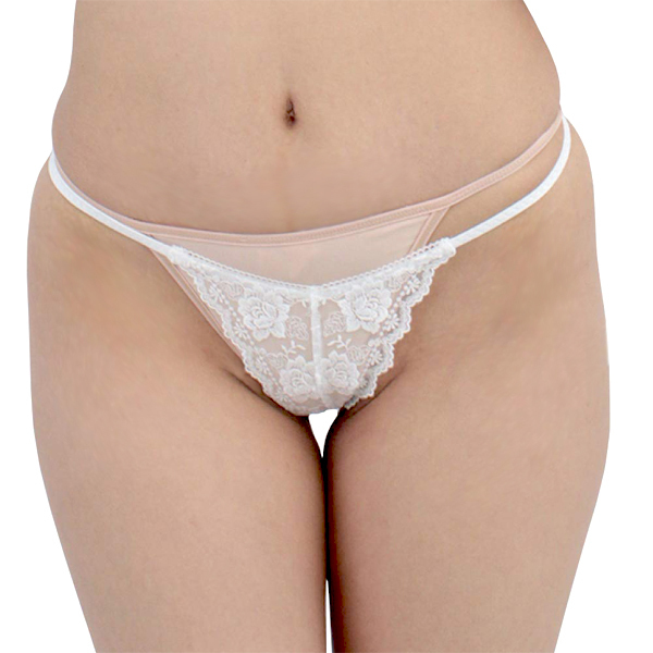 艶やかな光沢感と可憐な花柄総レースでセクシーな女性を演出するGストリング(白)。前も後ろも露出度満点!伸縮性のあるストレッチ生地が身体にフィット、魅惑のボディを際立たせる♪