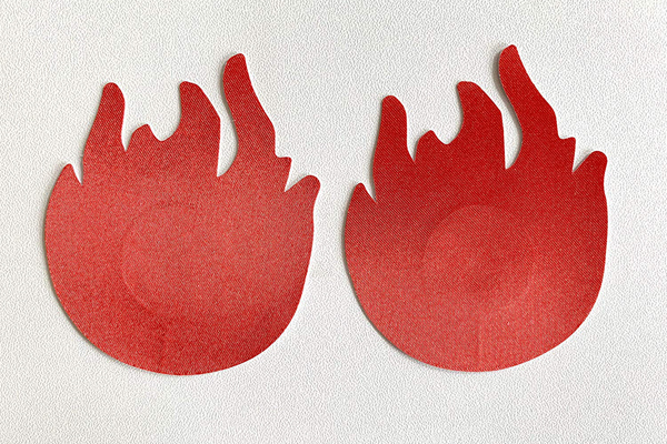 真っ赤な炎が貴方の胸を覆い尽くす!炎モチーフのニップルシール(2枚1セット)。情熱的に燃え上がりたい貴方に♪乳首に触れる裏面中央は肌を保護するため粘着しない素材を使用!肌に優しいニップレスをお探しなら是非どうぞ。