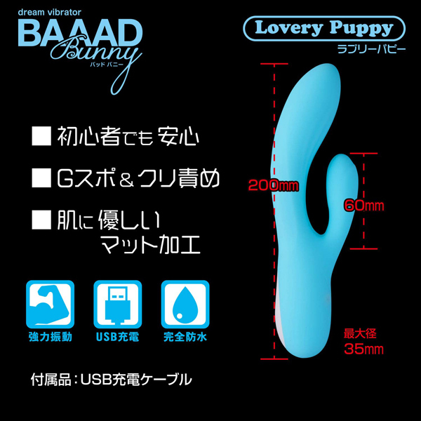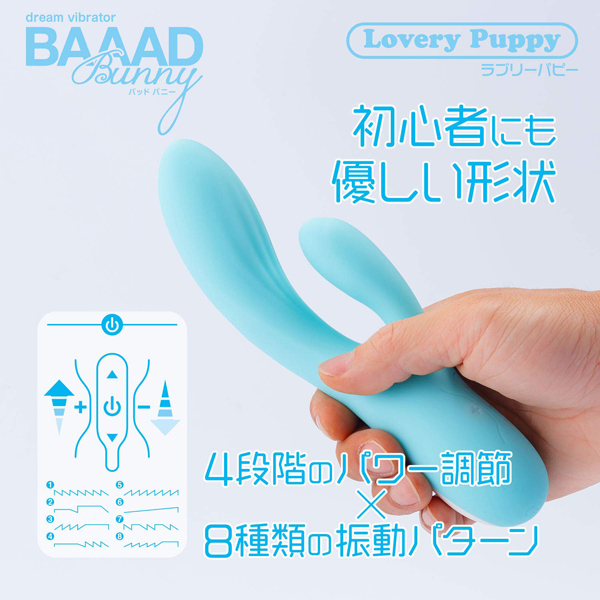 初心者さんにも最適な可愛い「バッドバニー」シリーズより、大きな面でクリを刺激するUSB充電式バイブ「ラブリーパピー」。