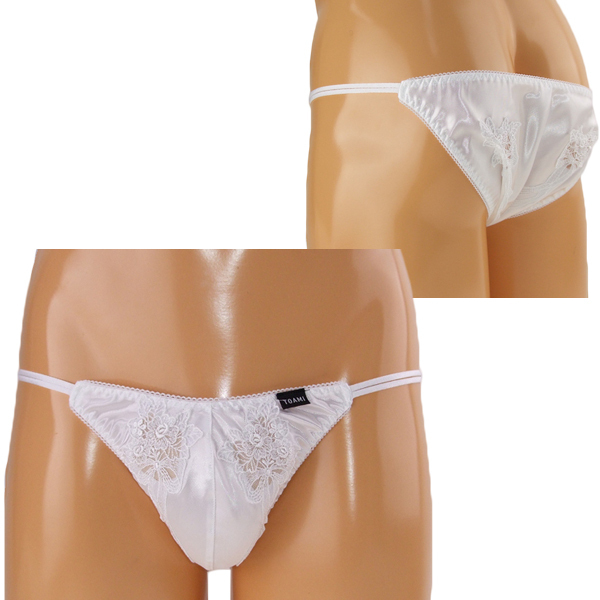 HOME > ランジェリー > メンズ ショーツ・ビキニ > メンズ 光沢ストレッチ生地レース装飾フルバック ホワイト