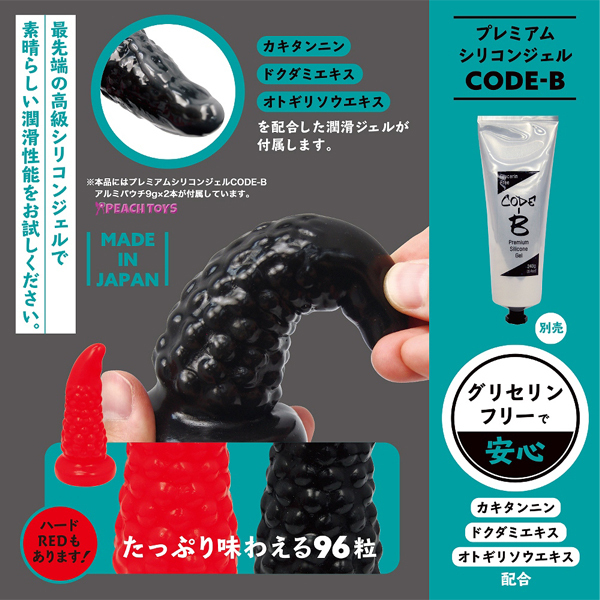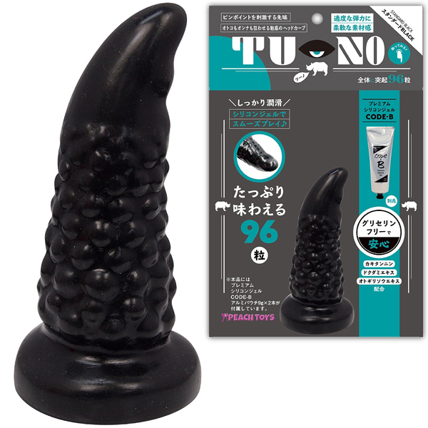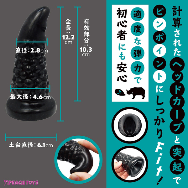 ツノを立てたような計算しつくしたカーブ形状が欲しいポイントに適確にフィットする!96粒のイボが付いた日本製のアナル専用ディルド(黒)。