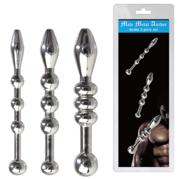 硬質なメタルボディが未知なる扉を開く!凹凸刺激か体感できるビーズタイプの尿道ブジー3点セット。