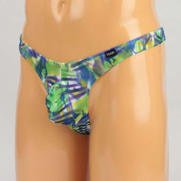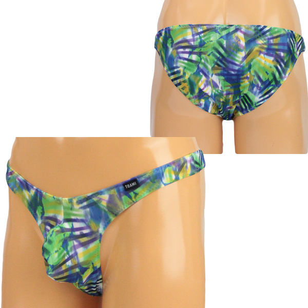 メンズ ストレッチ幾何学プリントもっこりフルバック グリーン